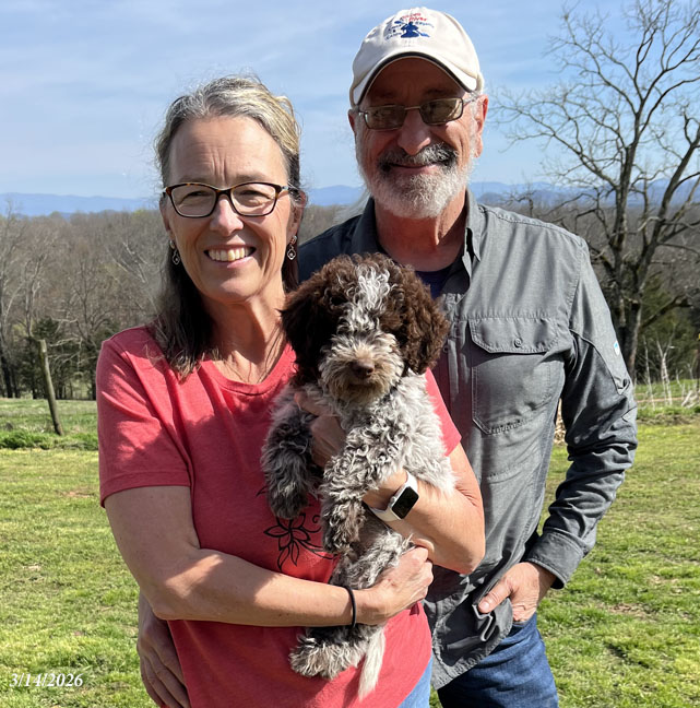 Puppy #8"Green" - Brown & White Male "Alfredo" has gone home and is already hunting for truffles! |